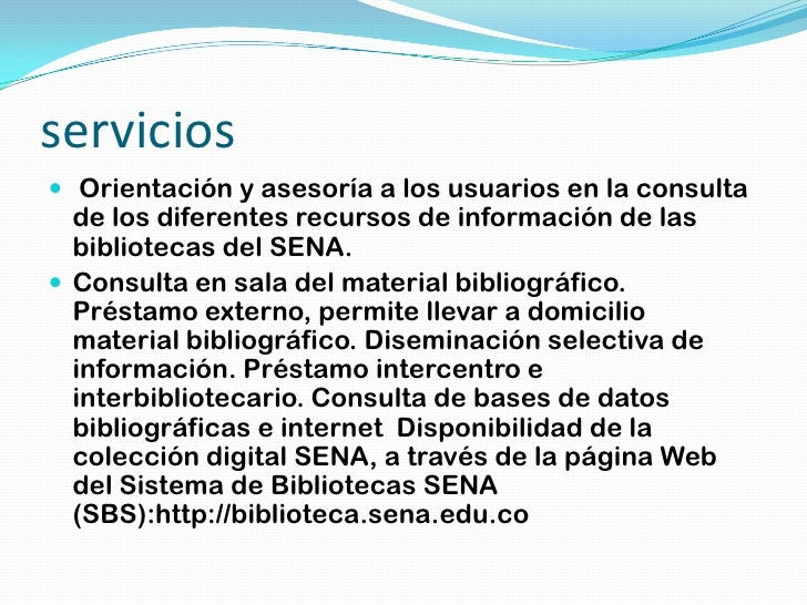 Proporcionar recursos de información que apoyen los programas de formación profesional a la comunidad sena y a los empresarios innovadores. La biblioteca virtual del sena es la biblioteca del sena que se encuentra a la red para facilitar que todos los colombianos tengan acceso al conocimiento y a la formación a través de los recursos. Estoy interesada en estudiar un curso virtual sobre bibliotecas escolares o algo relacionado con bibliotecas. Biblioteca virtual sena 2011retroalimentaciónpara realizar una evaluación de los. La comunidad educativa sena requiere información bibliográfica que enriquezca los contenidos de los programas de formación profesional.